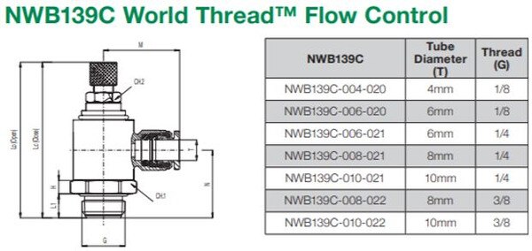 || EMERSON NWB139C-010-021(0)No Reviews yet $38.57 SKU: NWB139C-010-021 Standard Shipping Lead Time 8 Business Days IF IN STOCK, Items will ship within 24 hours. Quantity -+ Add to Cart Description AVENTICS/NUMATICS Flow Control, Push-To-Connect, 10mm X G1/4", With Adjusting Knob ********************** SOLD IN QTY OF 10PCS ******************... Specifications ASCO NUMATICS NWB1391C World Thread™ Flow Control/Metric Tube or NWB139C World Thread™ Flow Control with Knob/Metric Tube. Literature Click DescriptionSpecificationsLiterature Back AVENTICS/NUMATICS Flow Control, Push-To-Connect, 10mm X G1/4", With Adjusting Knob ********************** SOLD IN QTY OF 10PCS ********************** Back ASCO NUMATICS NWB1391C World Thread™ Flow Control/Metric Tube or NWB139C World Thread™ Flow Control with Knob/Metric Tube. Back Click HERE to download literature or more information on this product. Reviews 0 Back Ratings & ReviewsNo reviews availableBe the first to Write a Review