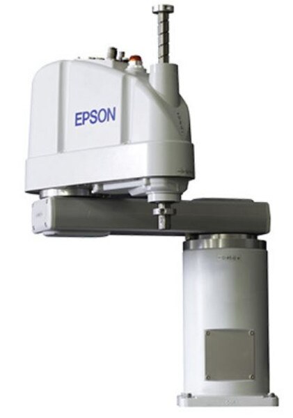 EPSON ROBOTS G6-453ST75 table top, 4-axis SCARA robot with the RC700A control and EPSON RC+ 7.x software (Machine specifications: 6 kg maximum payload, 450 mm horizontal reach, 330 mm vertical Z-axis stroke, +/- 360 degrees U-axis rotation, +/- 0.015 mm repeatability). 5 meter power and signal cables