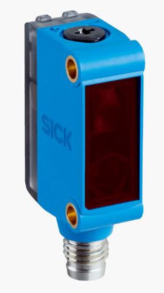 SICK (1052442) GTB6-P4212 G6 Series Photoelectric Proximity Sensor, Background Suppression, 5-250mm Sensing Range Max, PinPoint LED Visible Red Light, 6mm Light Spot, 650nm Wave, 5 Turn Adjustment, 10-30VDC Supply, PNP, Digital Output, Light/Dark Switching, Male M8 4-Pin Connector. Includes SS Mounting Bracket BEF-W100-A