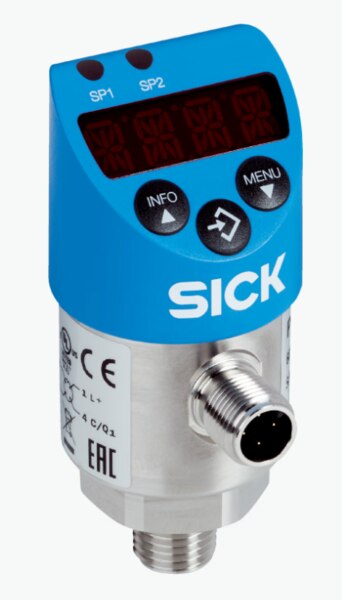 SICK Pressure sensors, PBS plus, PBS2-AB1X0SN1SS0Q5A0Z, Pressure type: Absolute pressure, Pressure unit: bar, Measuring range: 0 bar ... 1 bar, 0 psi ... 15 psi, Accuracy: ? ± 0.5 % of the span, Process connection: ¼'' NPT, Pressure port: 3.5 mm, Standard, Process temperature: –20 °C ... +85 °C, Seal: Without seal, Output signal: IO-Link/PNP/NPN + PNP/NPN + 4 mA ... 20 mA / 0 V ... 10 V, Connection type: Round connector M12 x 1, 5-pin, IP67, Supply voltage: 15 V DC ... 35 V DC