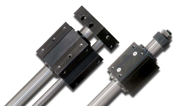 With magnetically coupled cylinders there is no mechanical connection of the carrier to the piston. The fully enclosed actuator body prevents contaminants from entering or escaping the actuator body. The perfect choice for applications where there are environmental concerns. Features internal polyurethane bumpers for dampened end-of-travel impact, anodized aluminum heads and actuator block, and a field-repairable design to practically eliminate maintenance downtime. Air or oil actuated to 100 PSIG. With no mechanical piston connection, the actuator block can be easily rotated for increased mounting flexibility